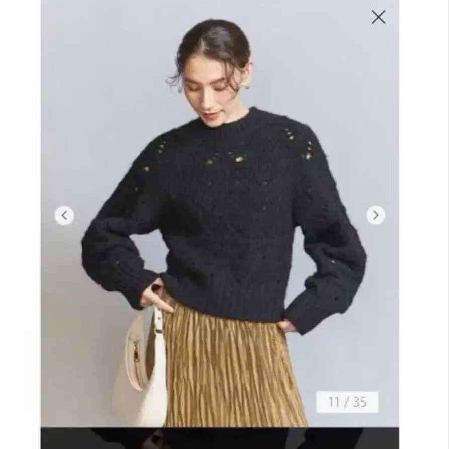 페미닌한 플리츠 스커트나 와이드 팬츠 등, 존재감 있는 하의와도 잘 어울리는 아이템입니다.