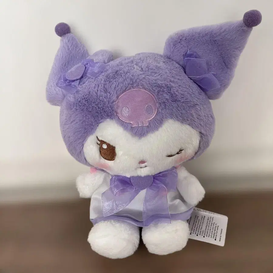 보라색 스컬 장식 봉제 인형, 윙크하는 표정이 특징. - 색상: 보라색 - 디자인: 스컬 장식 포함 - 복장: 리본 포함 드레스 - 특징: 윙크하는 표정 방문해 주셔서 감사합니다.