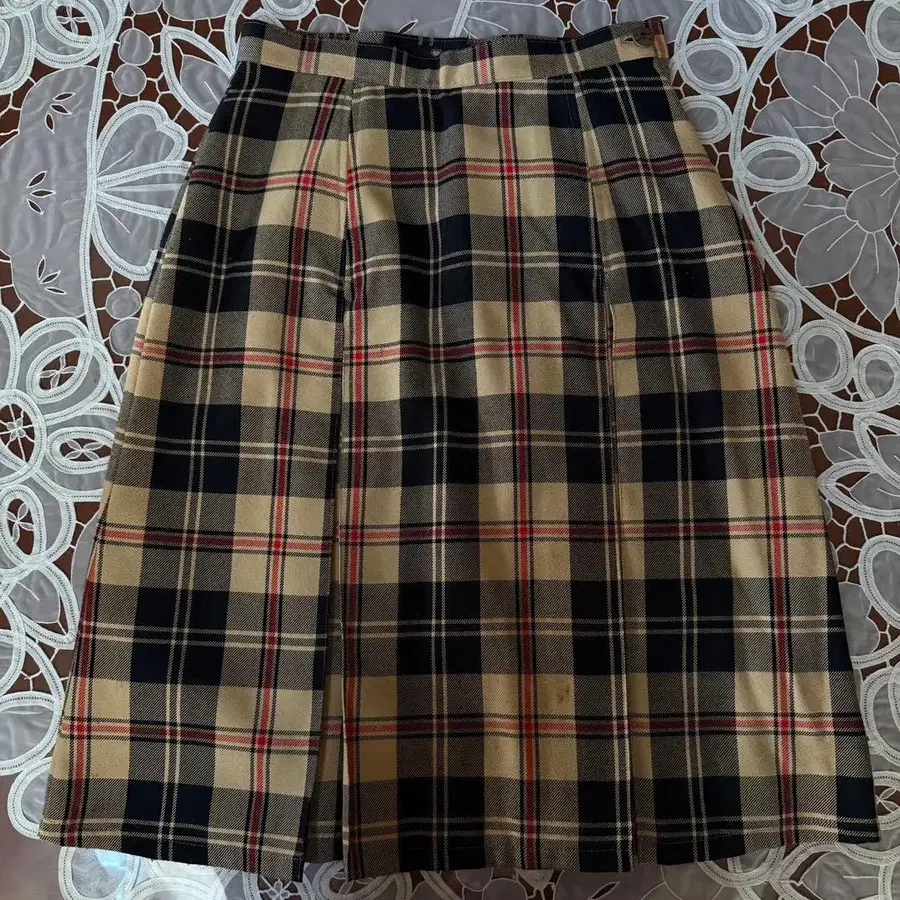 러버즈락 체크 무늬 플리츠 스커트 무릎 기장