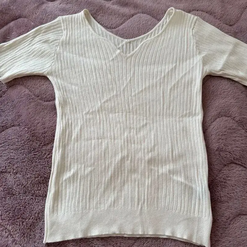 salire 화이트 컬러 V넥 리브 반팔 M 사이즈