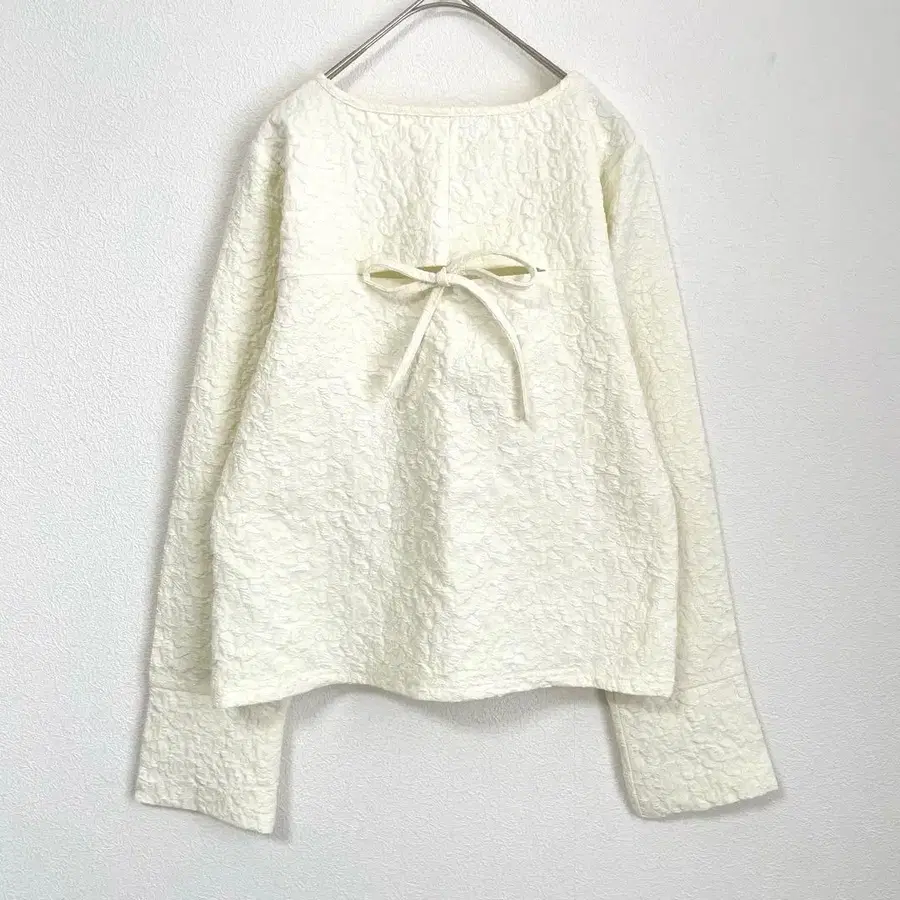 N. 부클레 자카드 티셔츠 백 오픈 리본 포함 크림색 M