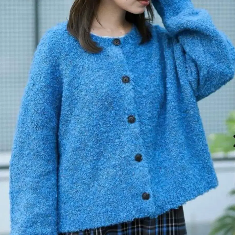 COEN 부클레 2way 믹스 니트 가디건 블루