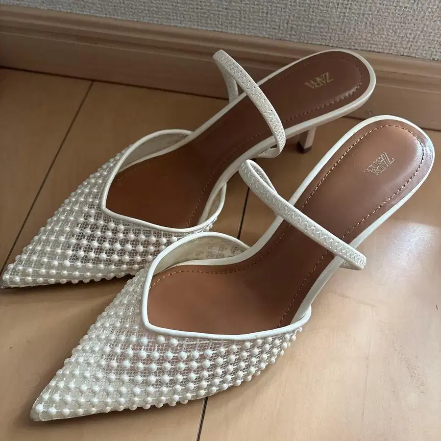 새상품급 ZARA 펄 화이트 뮬 사이즈 39