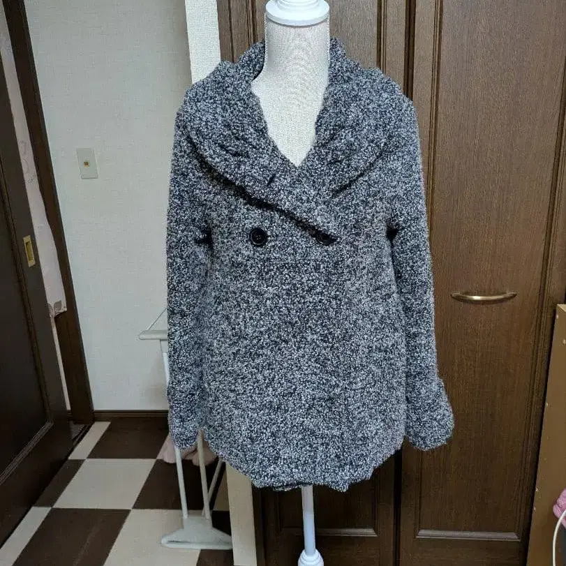 플리스풍 더블 브레스트 자켓 그레이 계열