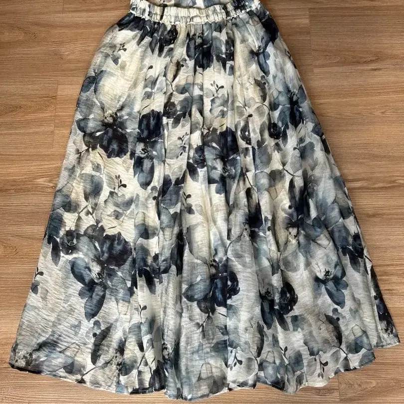 수채화풍 플라워 무늬 롱 스커트 허리밴딩 하늘하늘