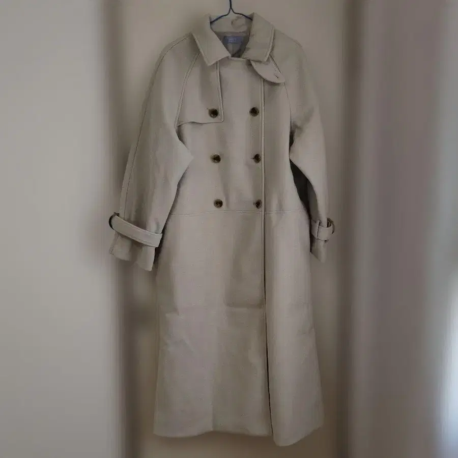 크림색 더블 브레스트 롱 코트, 벨트 디테일 소매 디자인. - 색상: 크림색 - 디자인: 더블 브레스트 - 소매 디자인: 벨트 포함 - 개폐: 버튼식 방문해 주셔서 감사합니다. ✢ 가격 인하 협상 ◎ 금액에 따라 거절할 수도 있습니다. ✢ 작년에 구매했으며, 한 번도 입지 않았습니다. 택은 잘랐지만 미사용 제품입니다. ✢ 무게가 꽤 나가는 코트입니다. ✢ 7번째 사진과 같이 옷깃을 세워서 입는 것도 가능합니다. ✢ 래글런 슬리브이므로 어깨 너비는 측정할 수 없습니다. ✢ 사이즈는 평평하게 놓았을 때 소매 길이(옷깃에서 측정한 길이) 72cm, 기장 118.5cm입니다. ✢ 햇볕이 들지 않는 곳에서 보관했습니다. ✢ 반려동물, 흡연자는 없습니다. ✢ 즉시 구매 ◎ ✢ 문의사항이 있으시면 댓글 주세요.