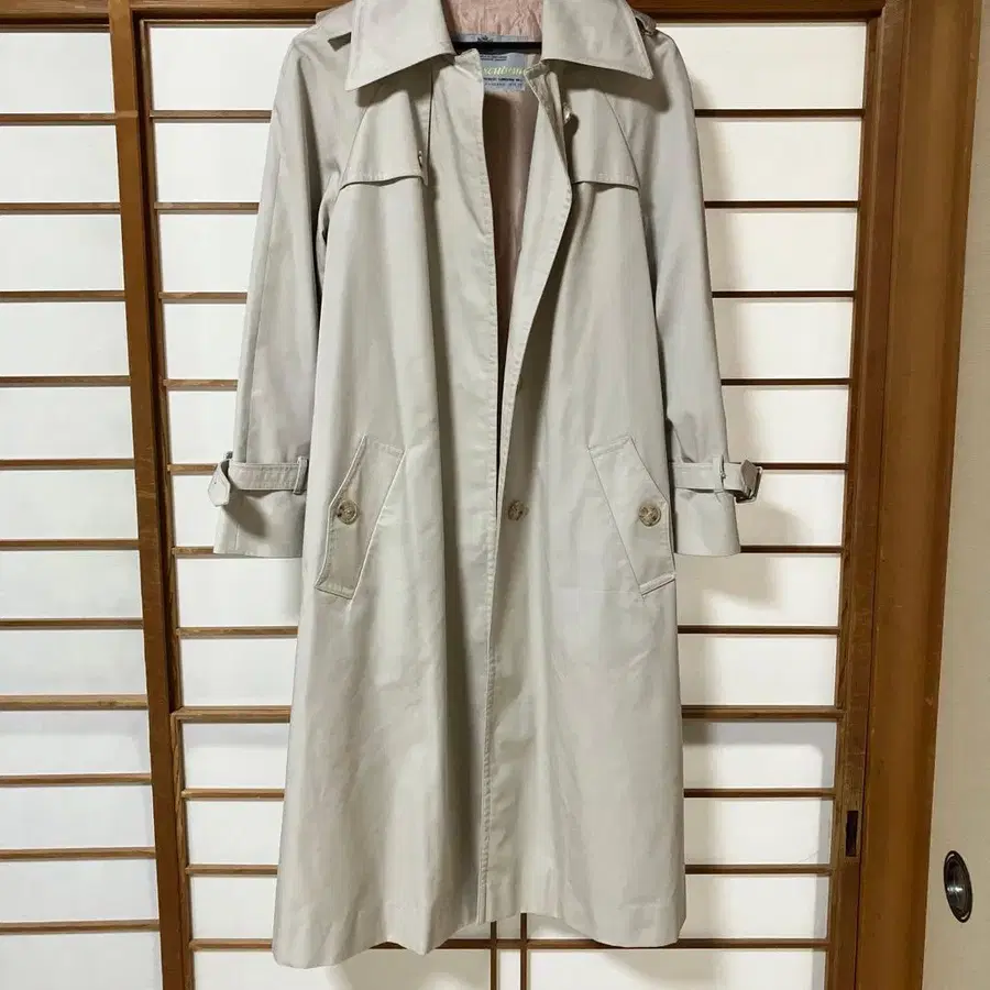 자동 번역되었어요. 원문보기방수 소재의 베이지 트렌치코트, 롱 기장으로 스타일리시합니다.