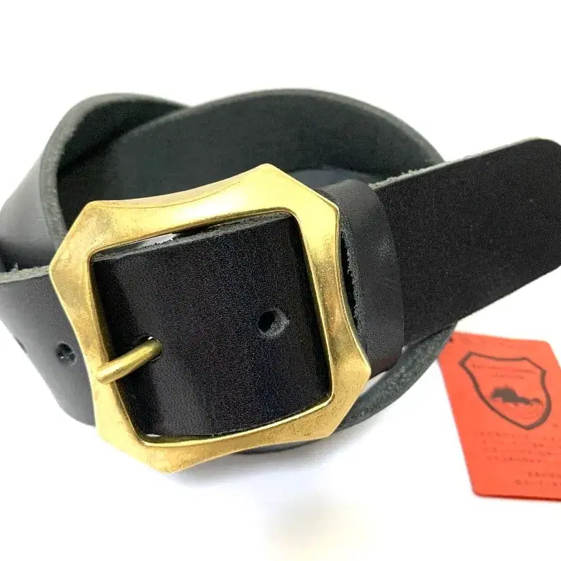 놋쇠제 팔각 커팅 버클 도치기 가죽 벨트 (블랙) 40mm 폭 통가죽