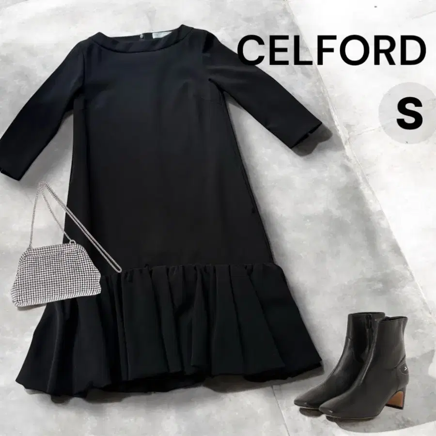 셀포드 더블 크로스 A 라인 프릴 원피스 블랙 36