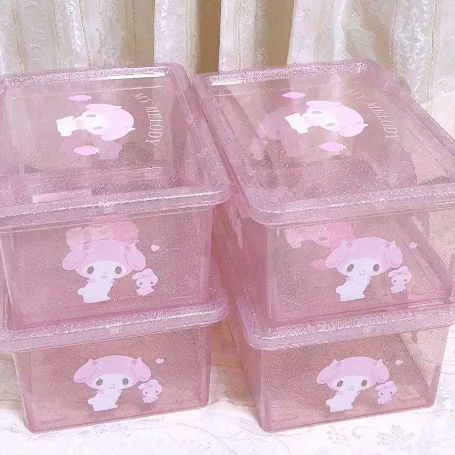 산리오 마이멜로디 뚜껑 있는 수납 케이스 딸기 S 사이즈 4개 세트