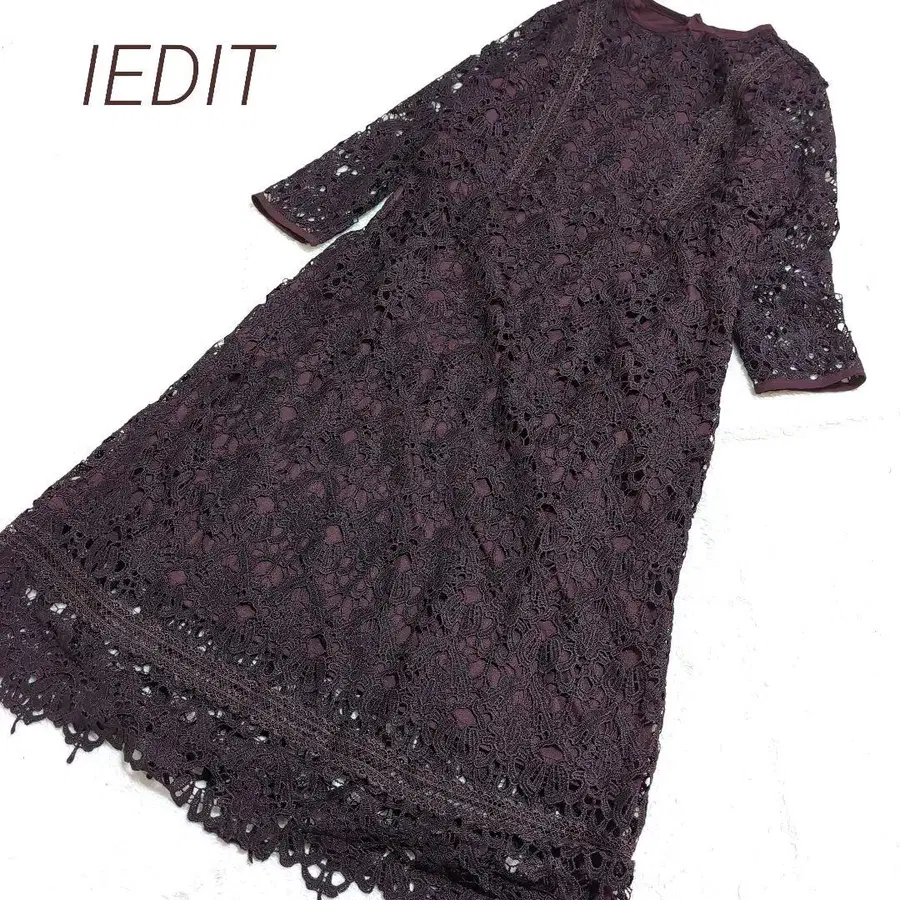 IEDIT 펠리시모 전체 레이스 긴팔 원피스 포멀 보르도 LL