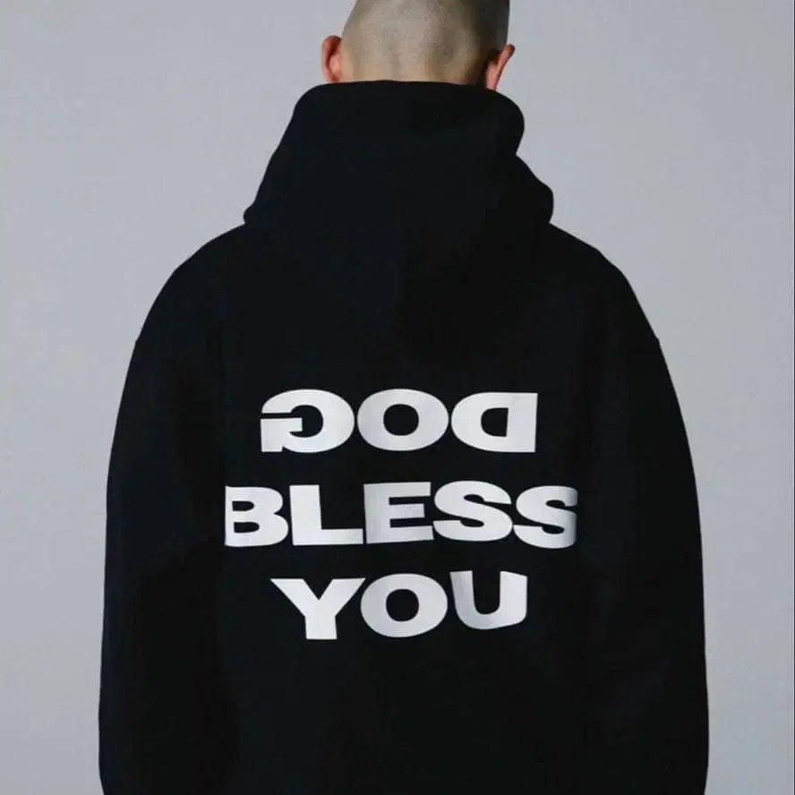 Rottweiler DOG BLESS YOU 후드 부착 후드티 블랙