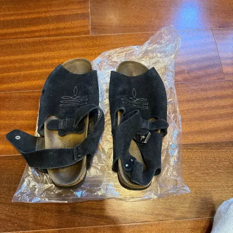 버켄 파필리오 블랙 스웨이드 오픈토 샌들