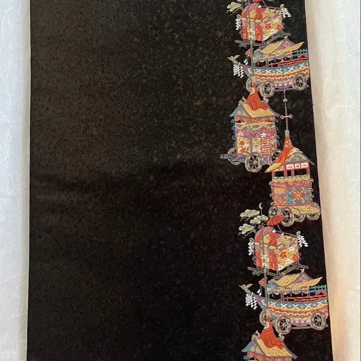 후쿠로 오비 블랙 베이스 수레 패턴 미사용