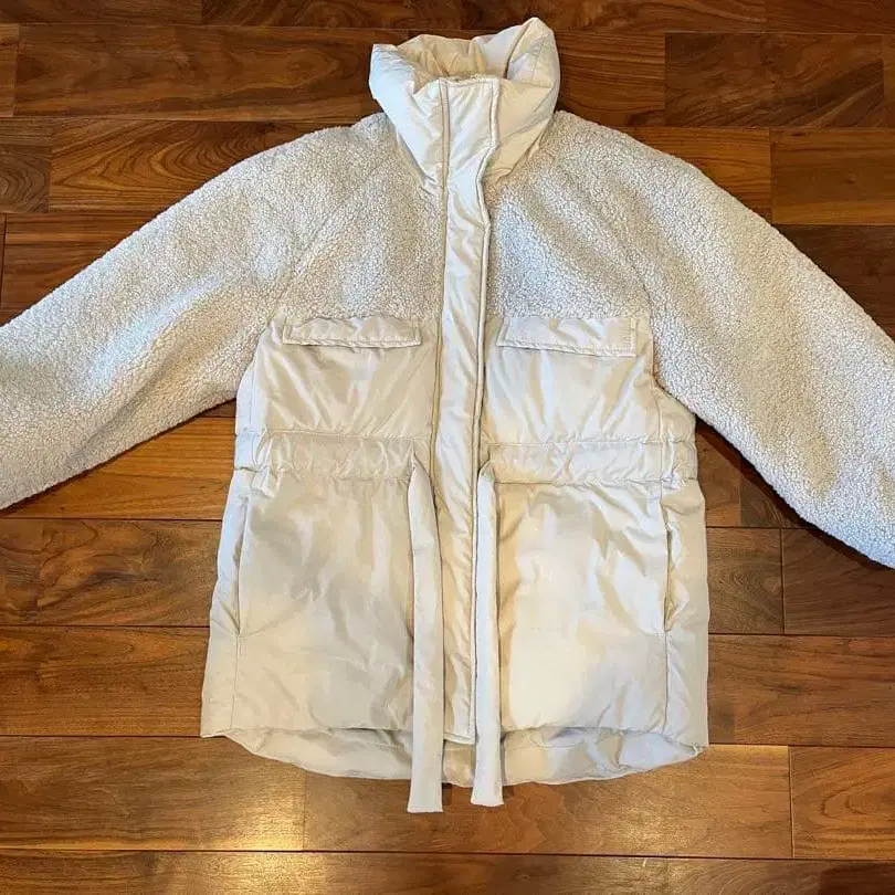 화이트 보아 자켓 후드 부착