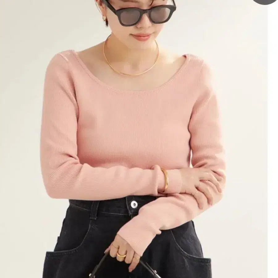 PAGE 핑크 리브 긴팔 상의
