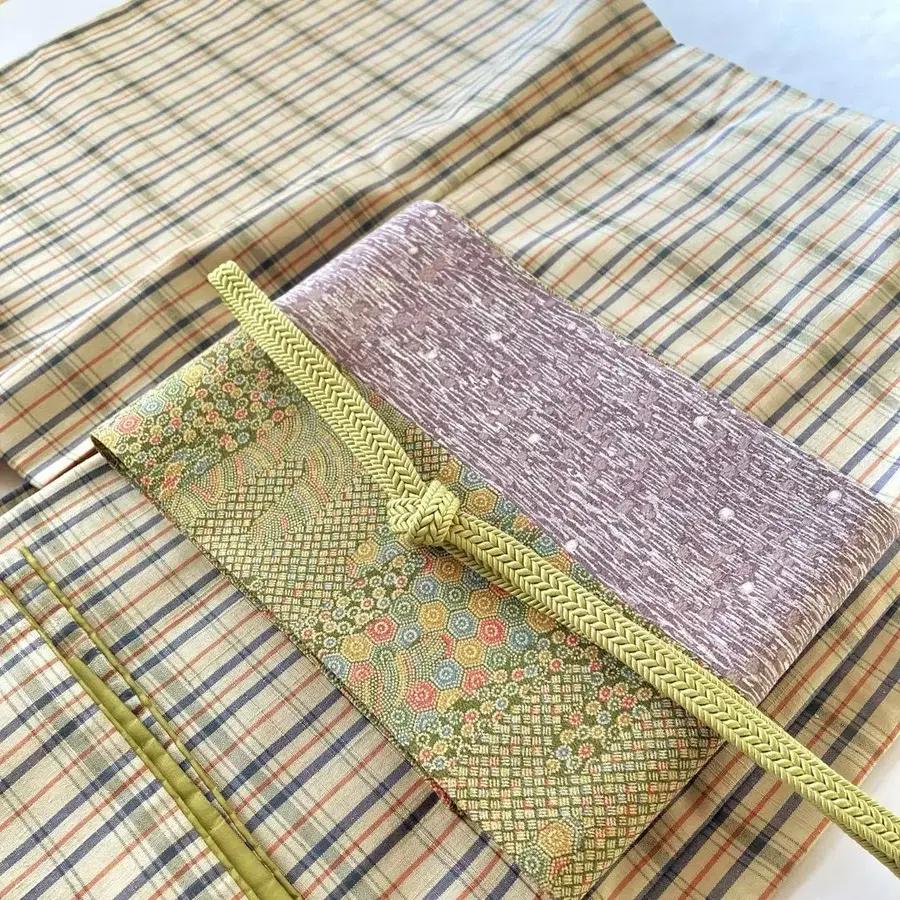 기모노를 해체하여 세탁하고 다시 제작한 핸드메이드 반폭 오비입니다.