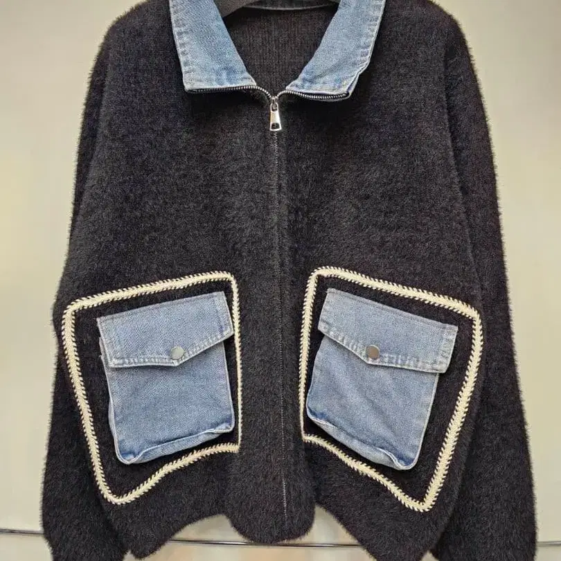 [ 새상품 ] 데님 포켓 부착 니트 가디건 M~L