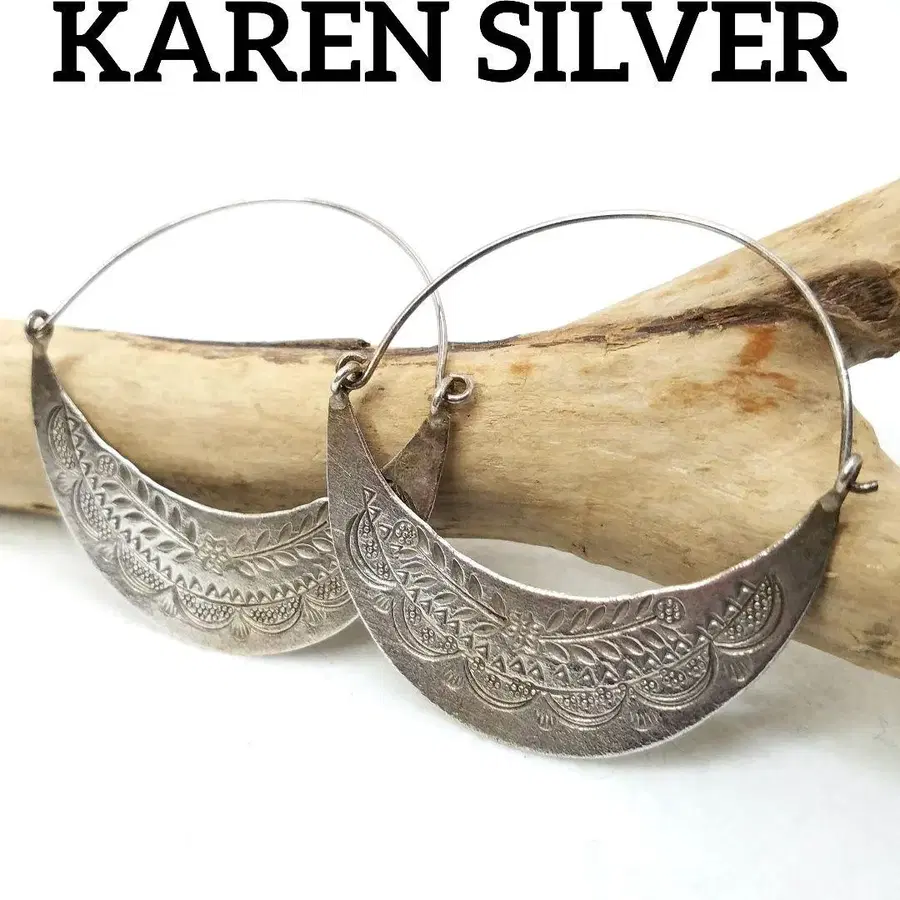 빈티지 카렌 실버 후프 귀걸이 보타니컬 플라워 모티브 꽃무늬