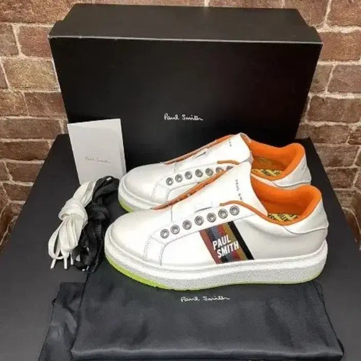 자동 번역되었어요. 원문보기화이트와 오렌지의 대비가 특징인 폴 스미스의 스니커즈.