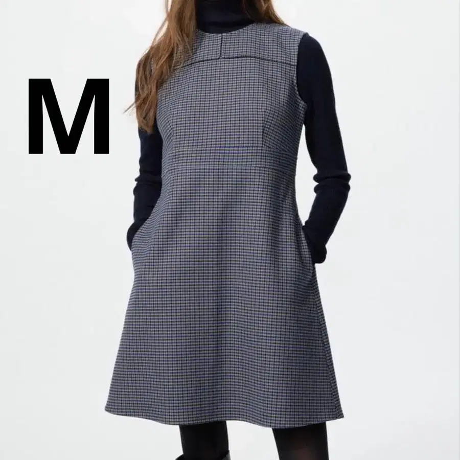 미사용 새상품 더블 페이스 미니 원피스 M 블루 유니클로 UNIQLO