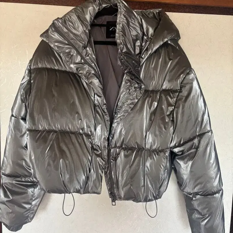 ZARA 메탈릭 그레이 숏 다운 자켓 L