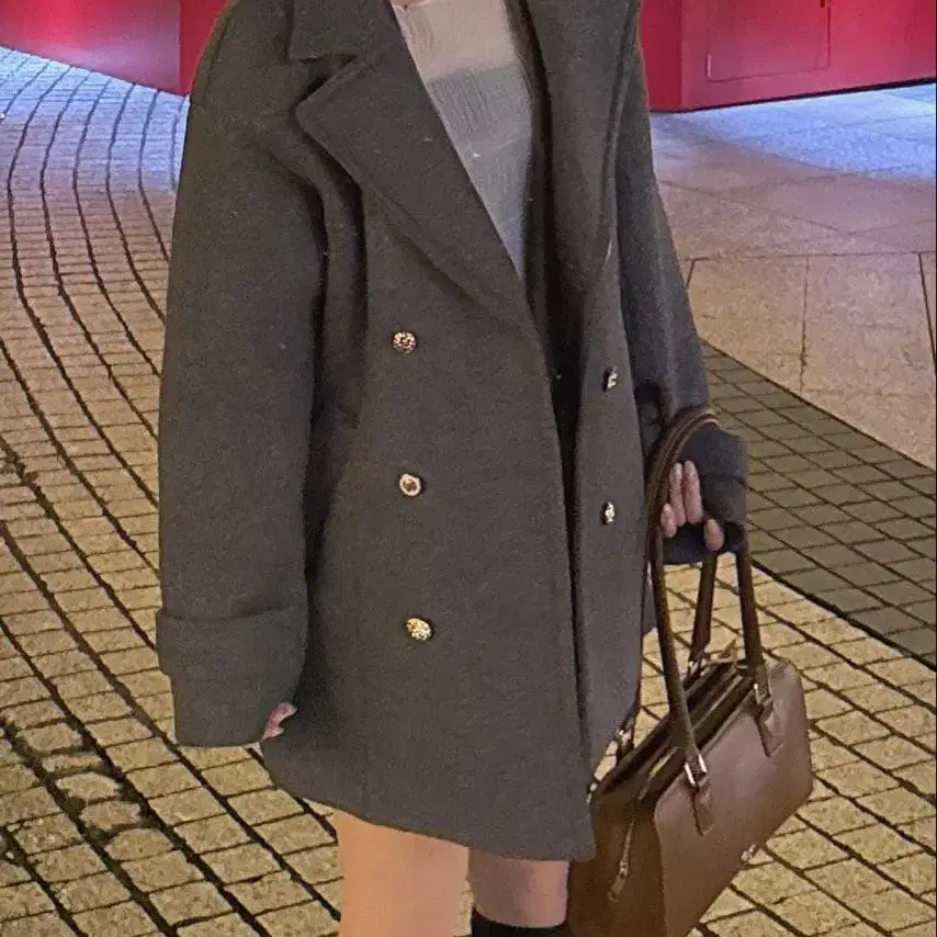 dazzlin 오버 멀티 버튼 P코트 차콜 그레이