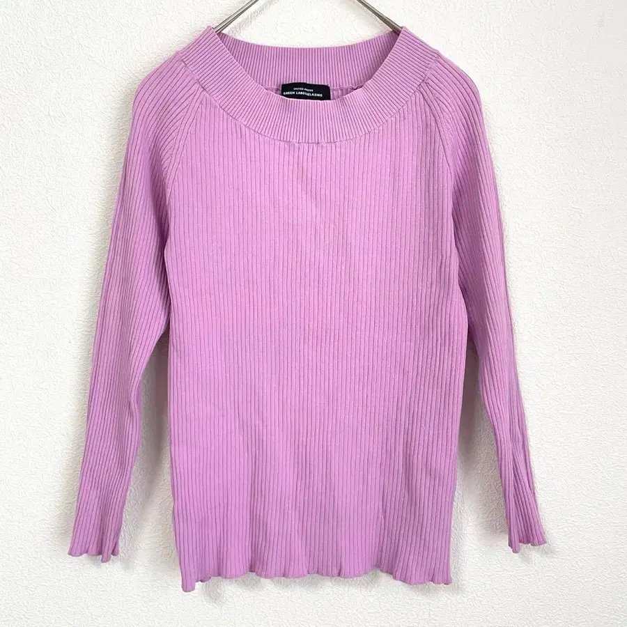 그린 라벨 릴랙싱 핑크 퍼플 리브 티셔츠 7부 소매 세로 리브