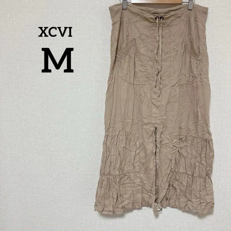 자동 번역되었어요. 원문보기허리 조절 가능한 베이지 색상의 프릴 디자인 롱 스커트.