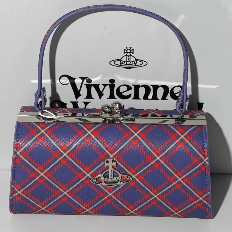 새로운 큰 다이아몬드 모양의 빨간색과 파란색 체크 무늬 립스틱 백