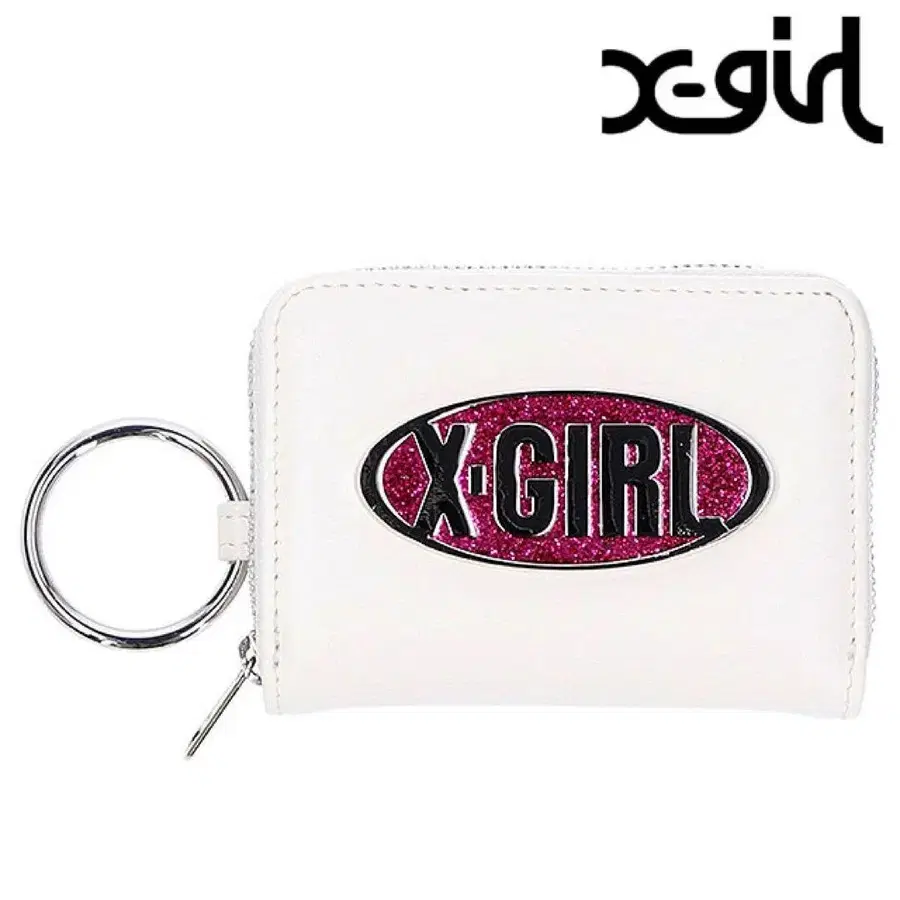 X-girl 글리터 오벌 로고 코인 앤 카드 케이스 미니 지갑