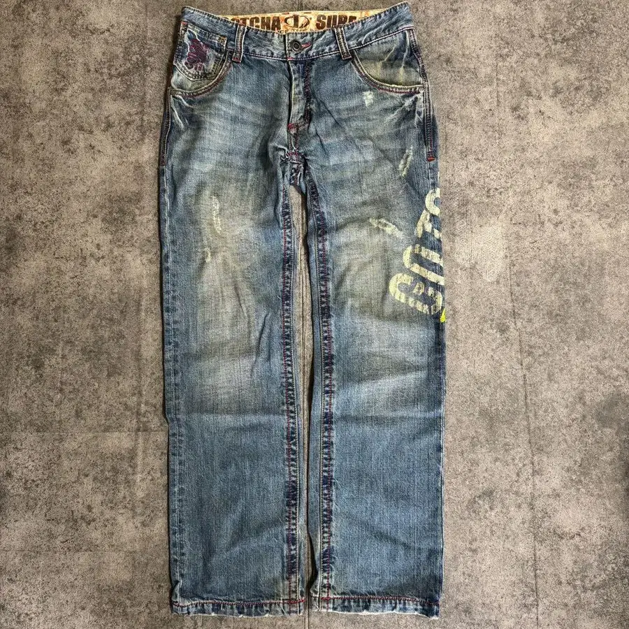 y2K 라이트 블루 데님 팬츠 gotcha 갓차 데미지