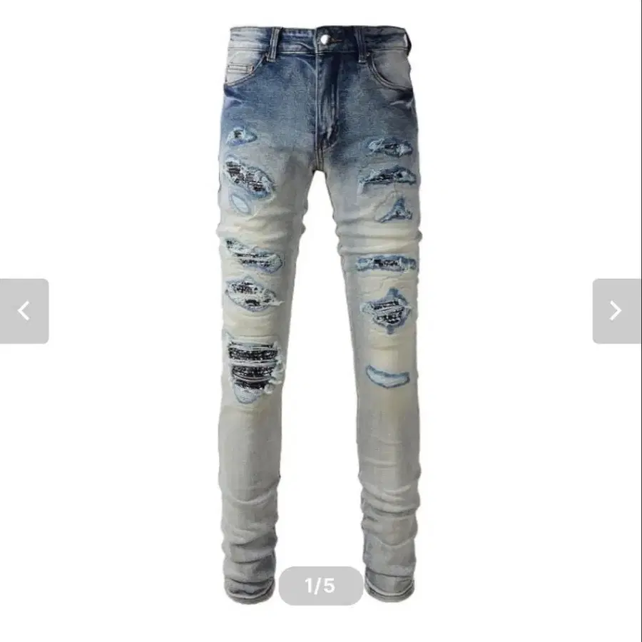 데미지 가공 라이트 블루 슬림핏 데님 사이즈 28