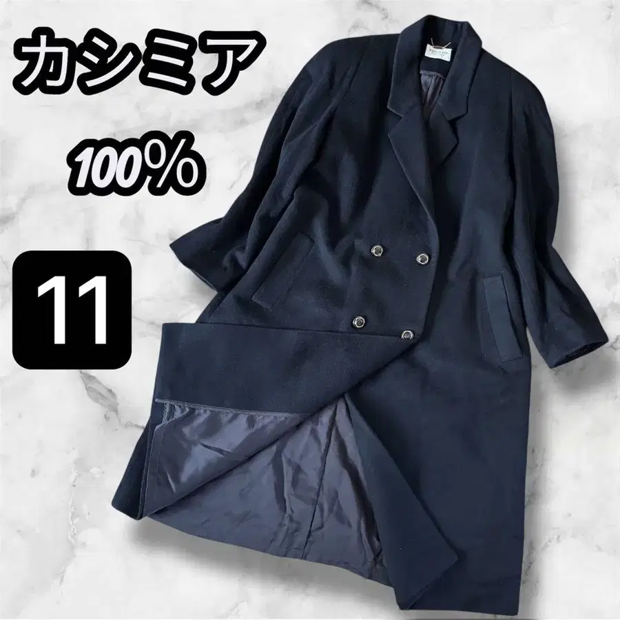 캐시미어 100% / 블랙 골드 버튼 롱 코트 11호 빈티지