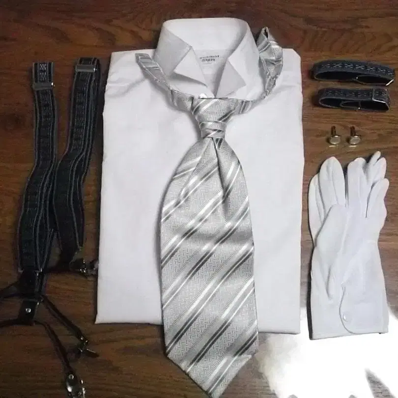 모닝용 윙카라 셔츠, 넥타이, 서스펜더, 장갑 등 6종 세트