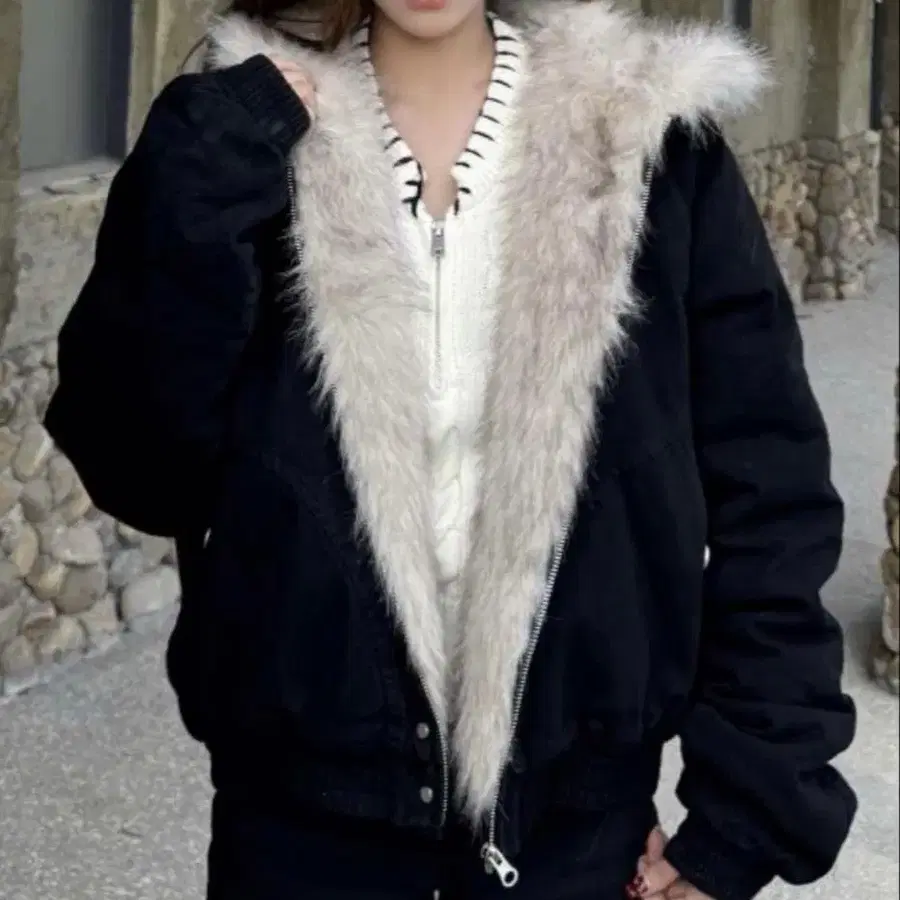 따뜻한 퍼 자켓 블랙 새상품! 미착용