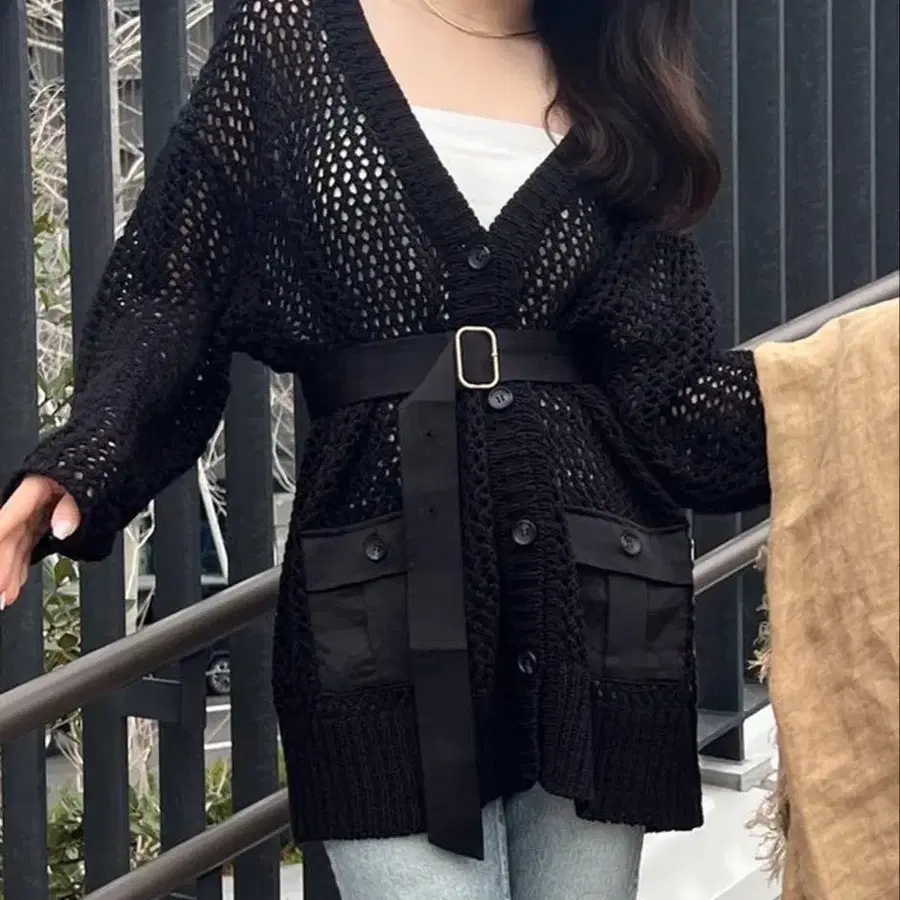 anuans 메쉬 사파리 니트 가디건
