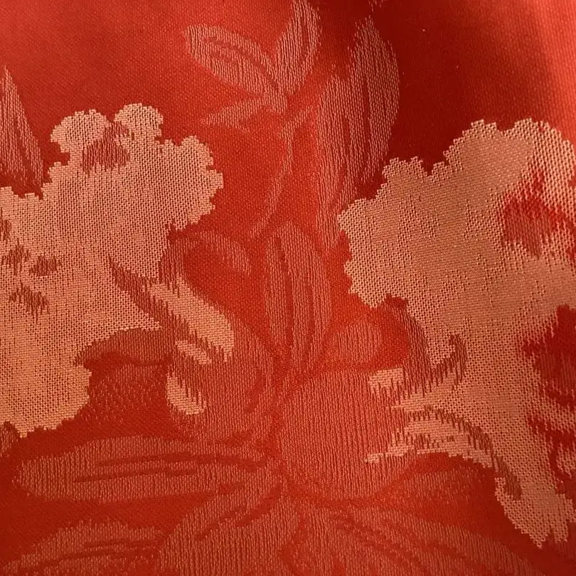 앤티크 기모노 원단 진홍색 카틀레야 무늬 실크 세탁 완료