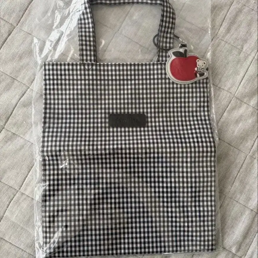 택 포함 미사용 새상품 파밀리아 깅엄 체크 토트백 블랙