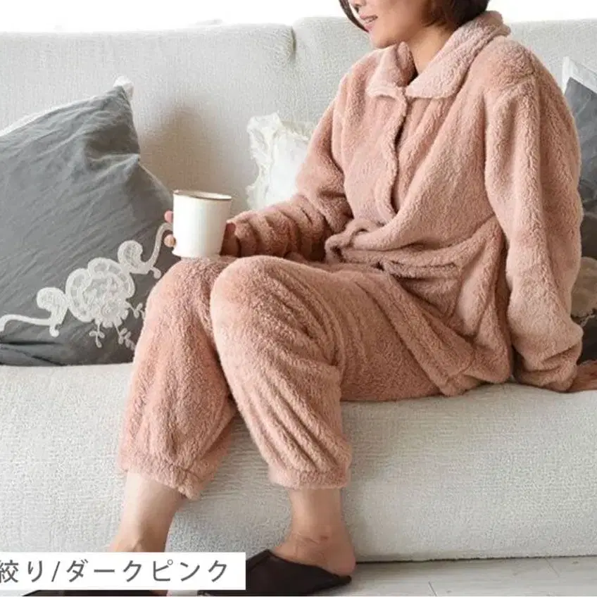 플리스 룸웨어 다크 핑크 그레이 2점 세트
