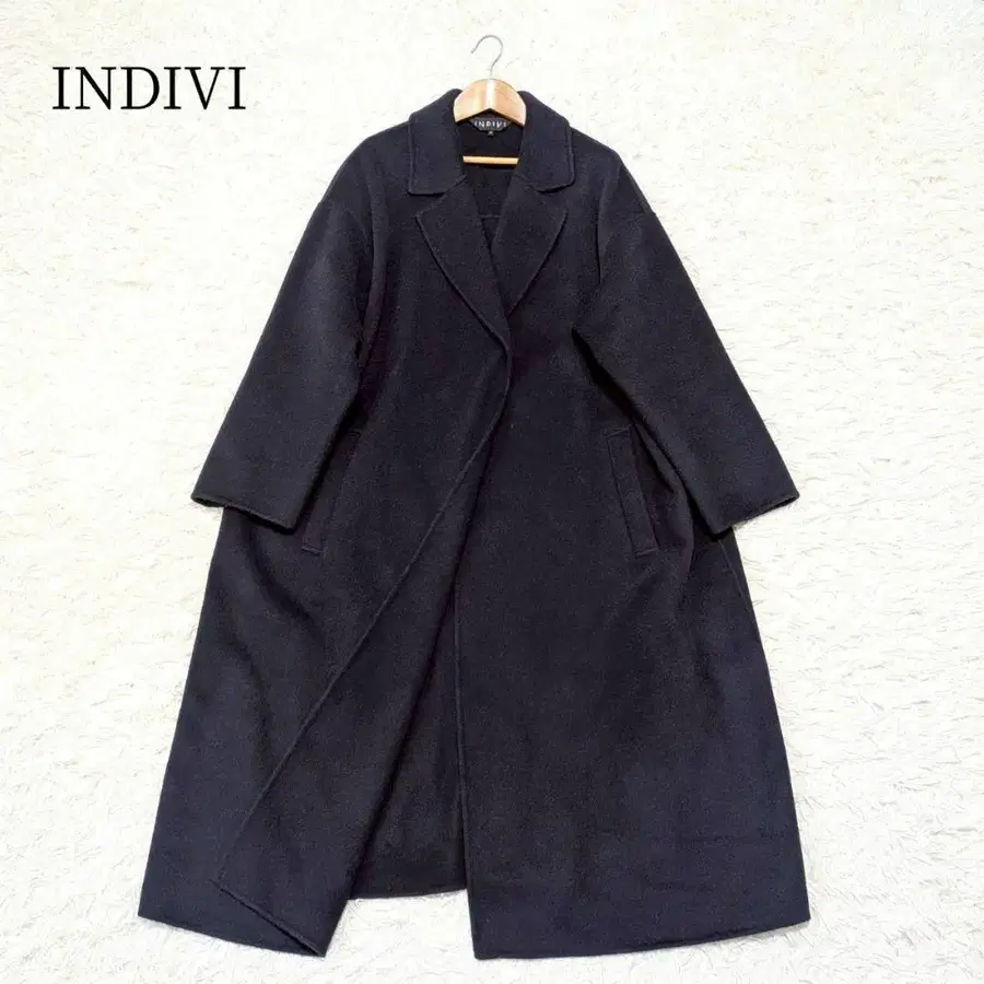 INDIVI [울 혼방] 롱 코트 네이비 빅 사이즈 19호 5L 상당