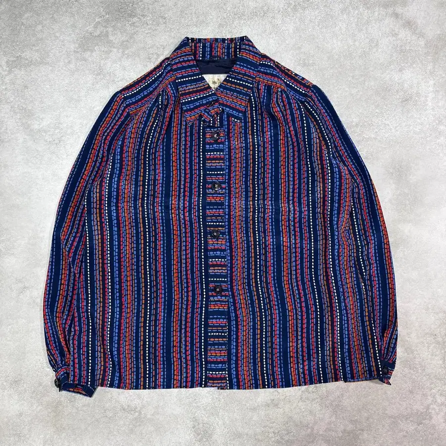 네이비 베이스에 배색 스트라이프가 돋보이는 긴팔 셔츠. 적당한 여유가 있는 실루엣으로 코디의 주인공이 될 한 장입니다.