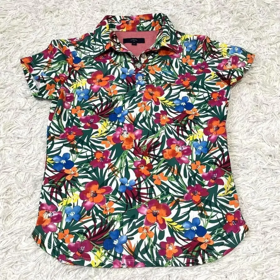 하와이안 셔츠 같은 꽃무늬 폴로입니다.