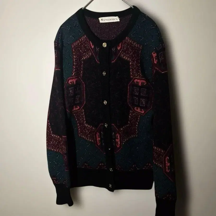 새상품급 올 패턴 기하학 패턴 니트 가디건 울 100% L