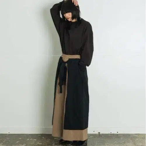 aphlotus 바이컬러 레이어드 이지 와이드 팬츠