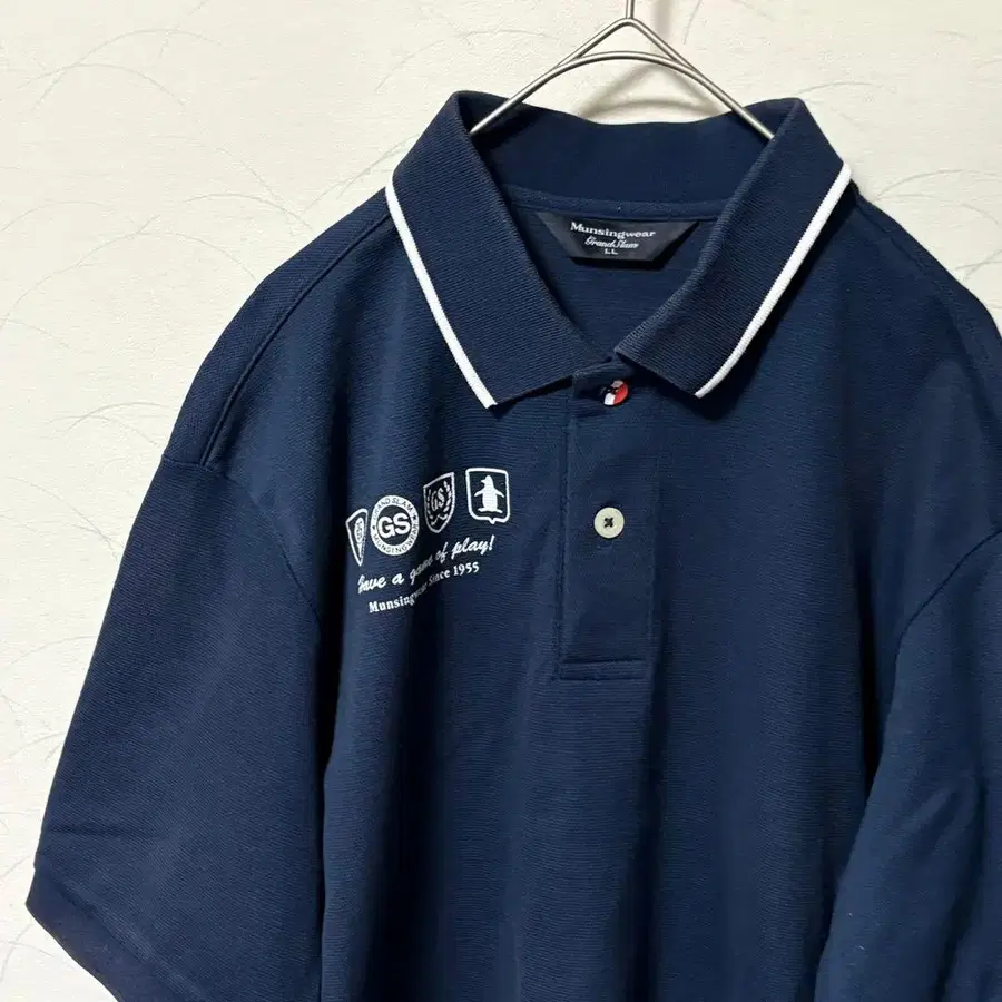 먼싱웨어 반팔 피케 셔츠 네이비 골프웨어 남성용 LL 사이즈