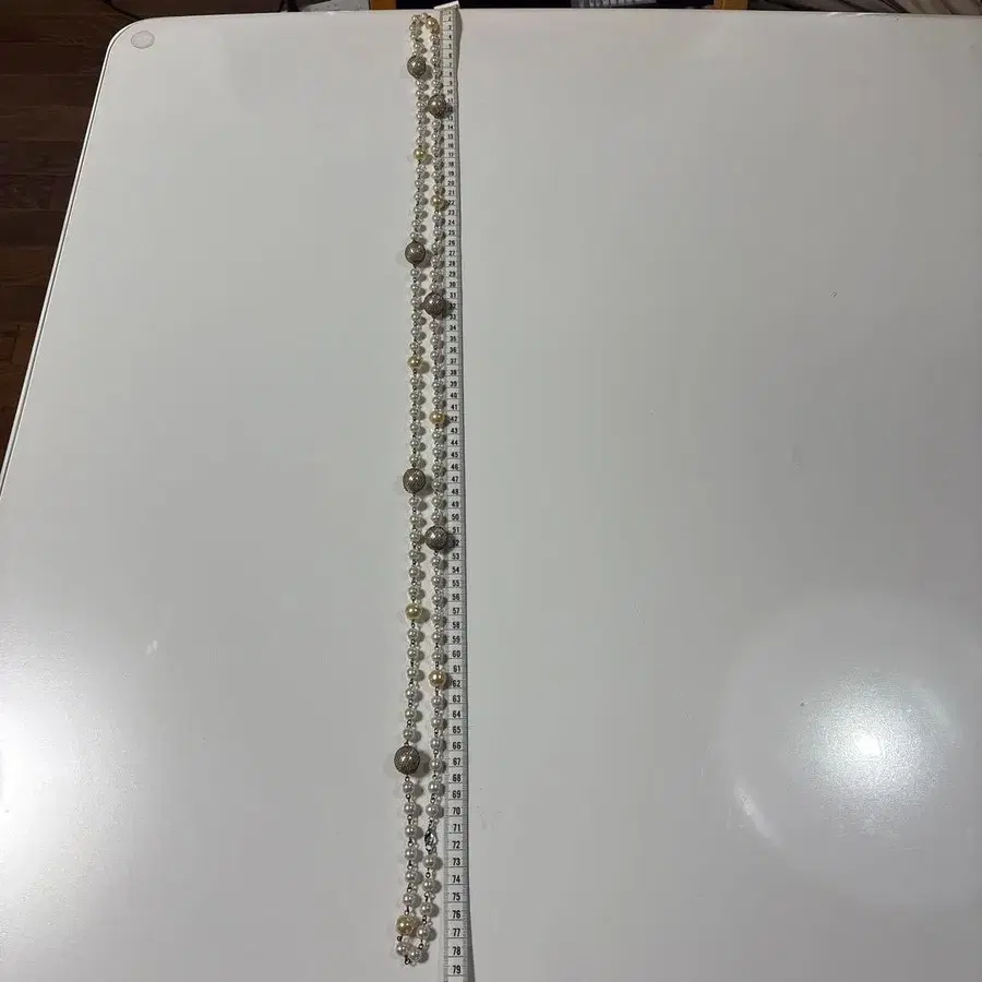 실버 골드 펄 목걸이 약 80cm