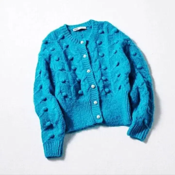 ZARA 펄 버튼 니트 가디건 터콰이즈
