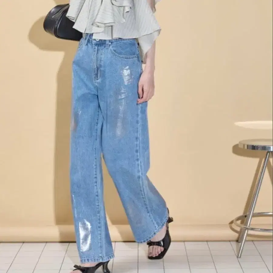 [ THE YOn ] 호일 프린트 데님 팬츠 M 라이트 블루 여성용