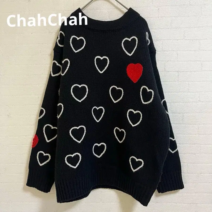 ChahChah 해피 하트풀 핸드 자수 니트 남녀 공용